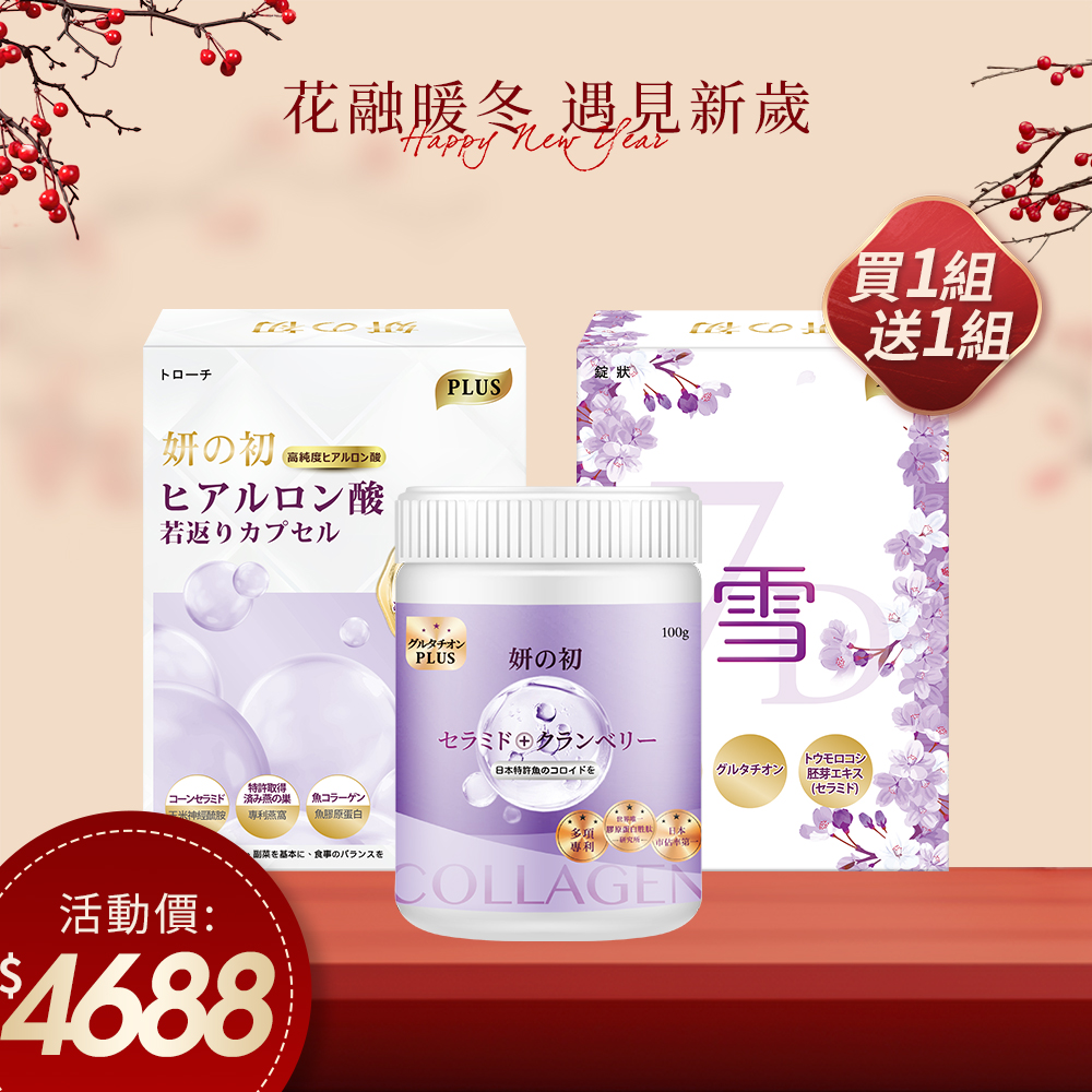 買一組 送一組|妍の初玻尿酸若返錠+妍之初專利魚膠原胜肽+妍の初日本專利激光錠