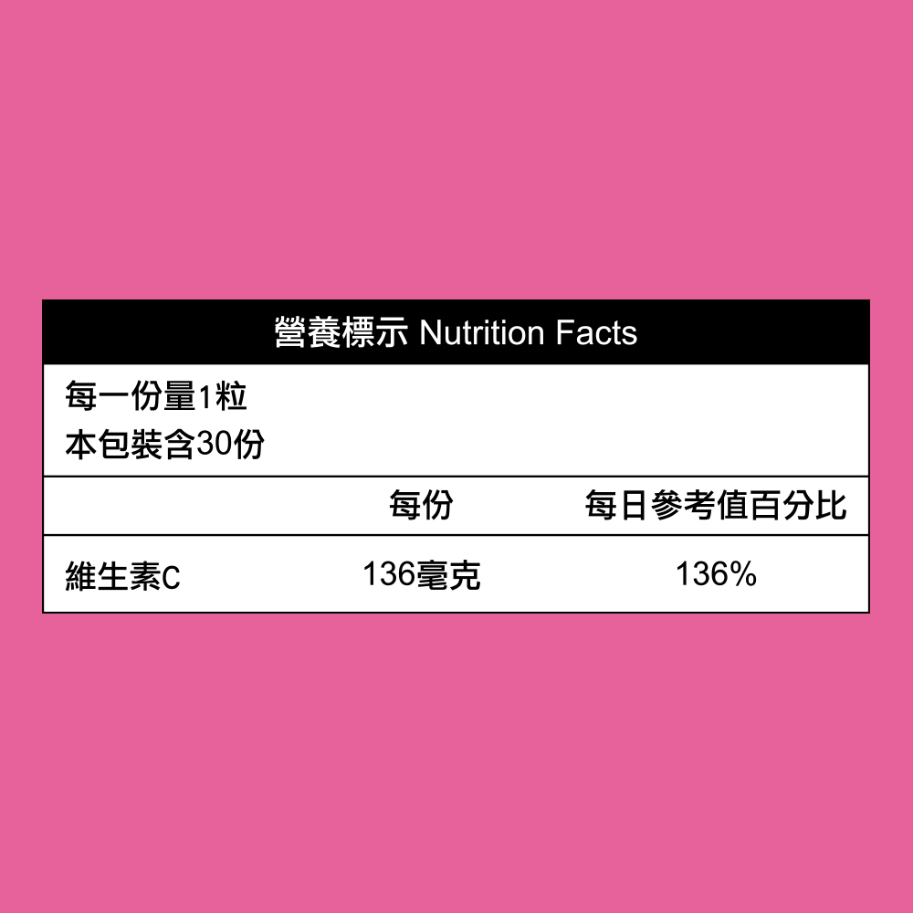 營養標示:維生素 C 136毫克