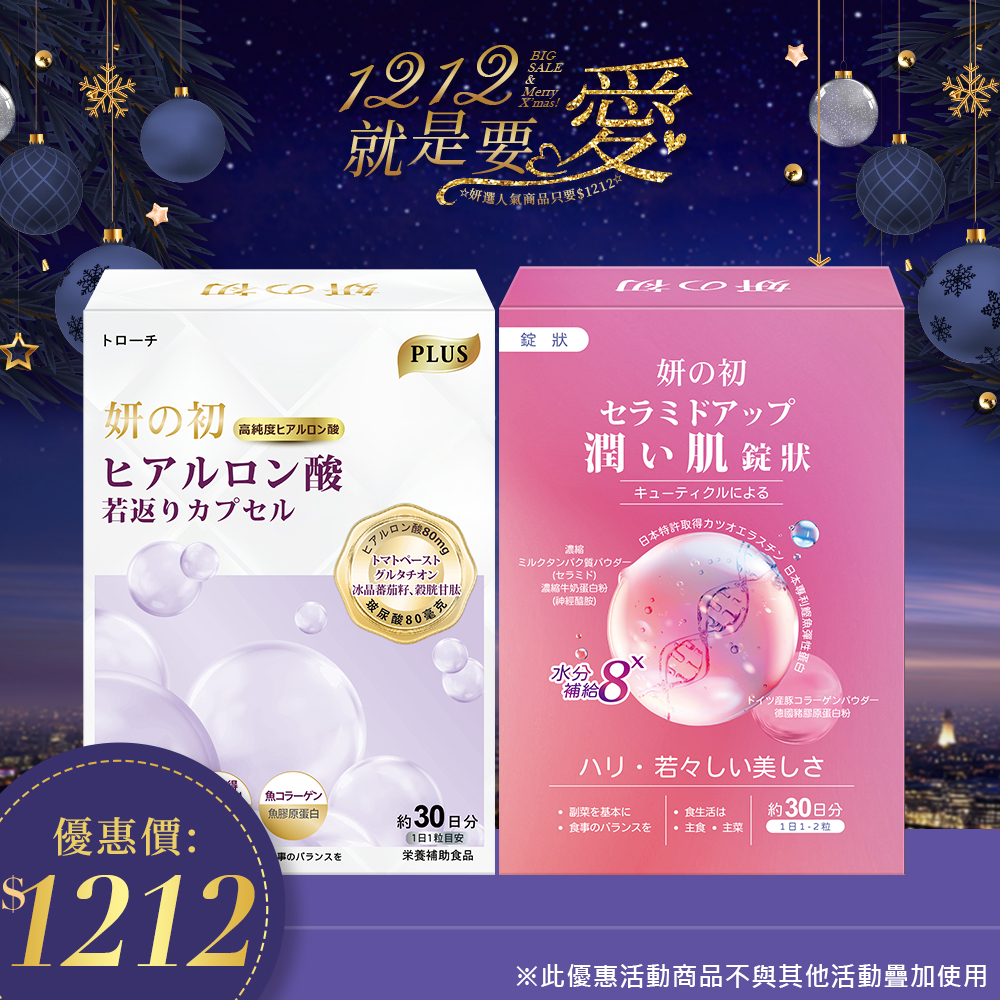 成分:微結晶狀α-纖維素、維生素C(抗壞血酸、玉米澱粉)、流行鏈球菌發酵物(含透明質酸鈉)、麥芽糊精、余甘子萃取物、蕃茄籽萃取物(麥芽糊精、蕃茄籽萃取物)、二氧化矽、硬脂酸鎂、穀胱甘肽、魚鱗膠原蛋白粉、玉米胚芽萃取物(含神經醯胺;糊精、玉米胚芽萃取物)、燕窩萃取物(糊精、燕窩萃取物)。